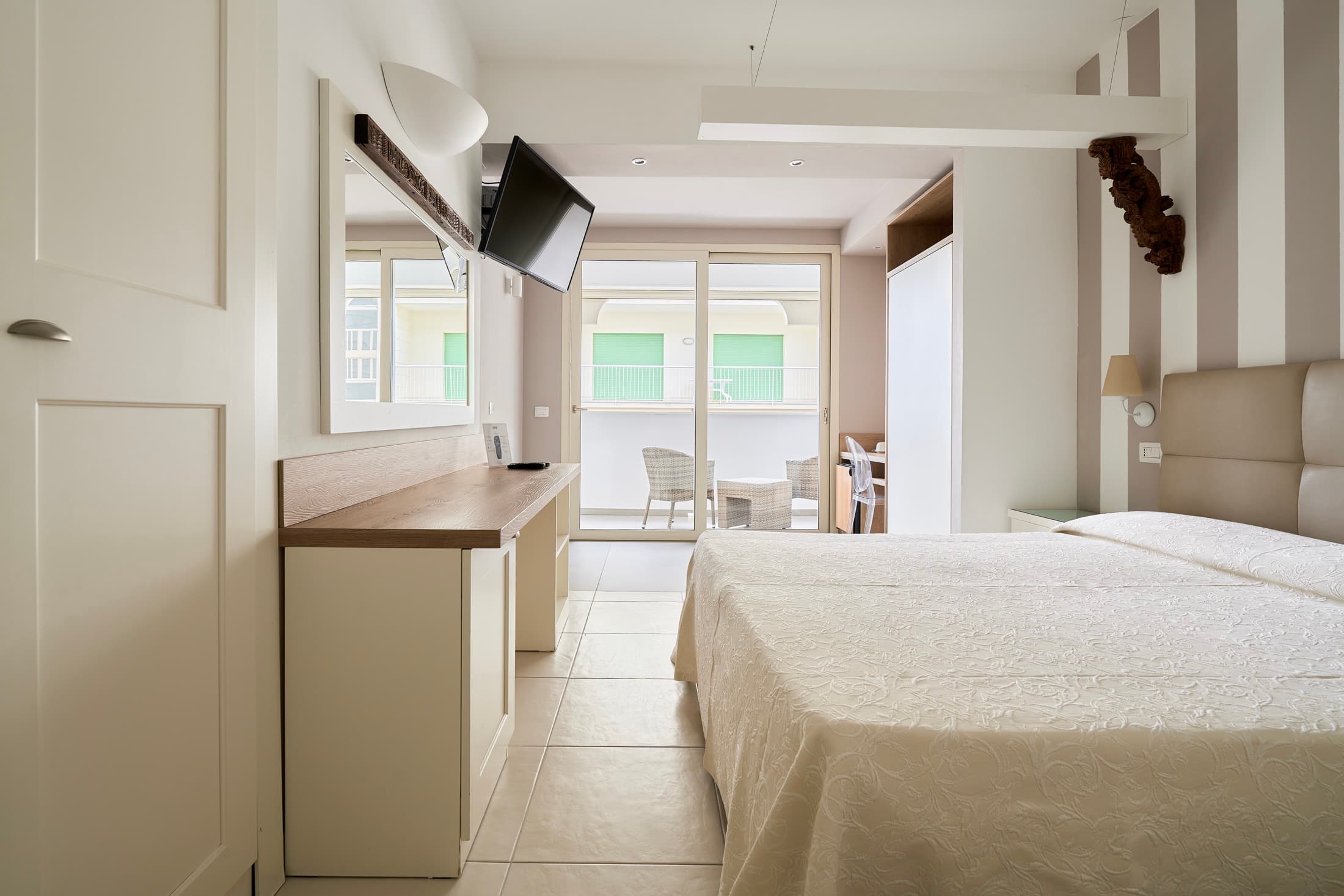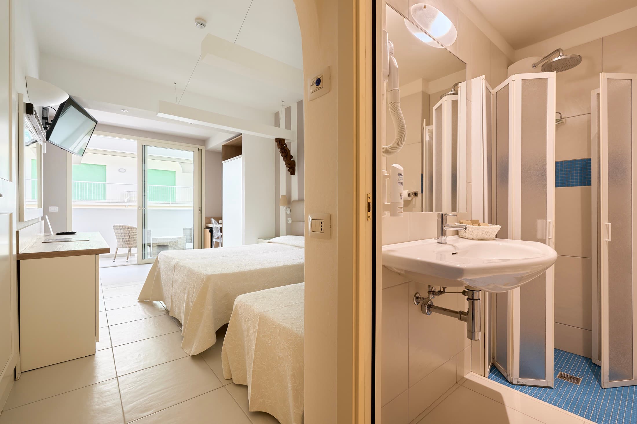 La stanza ha una metratura superiore ai 23 mq con ampia terrazza loggia protetta di 4,5 mq a cui si aggiunge un comodo bagno privato.