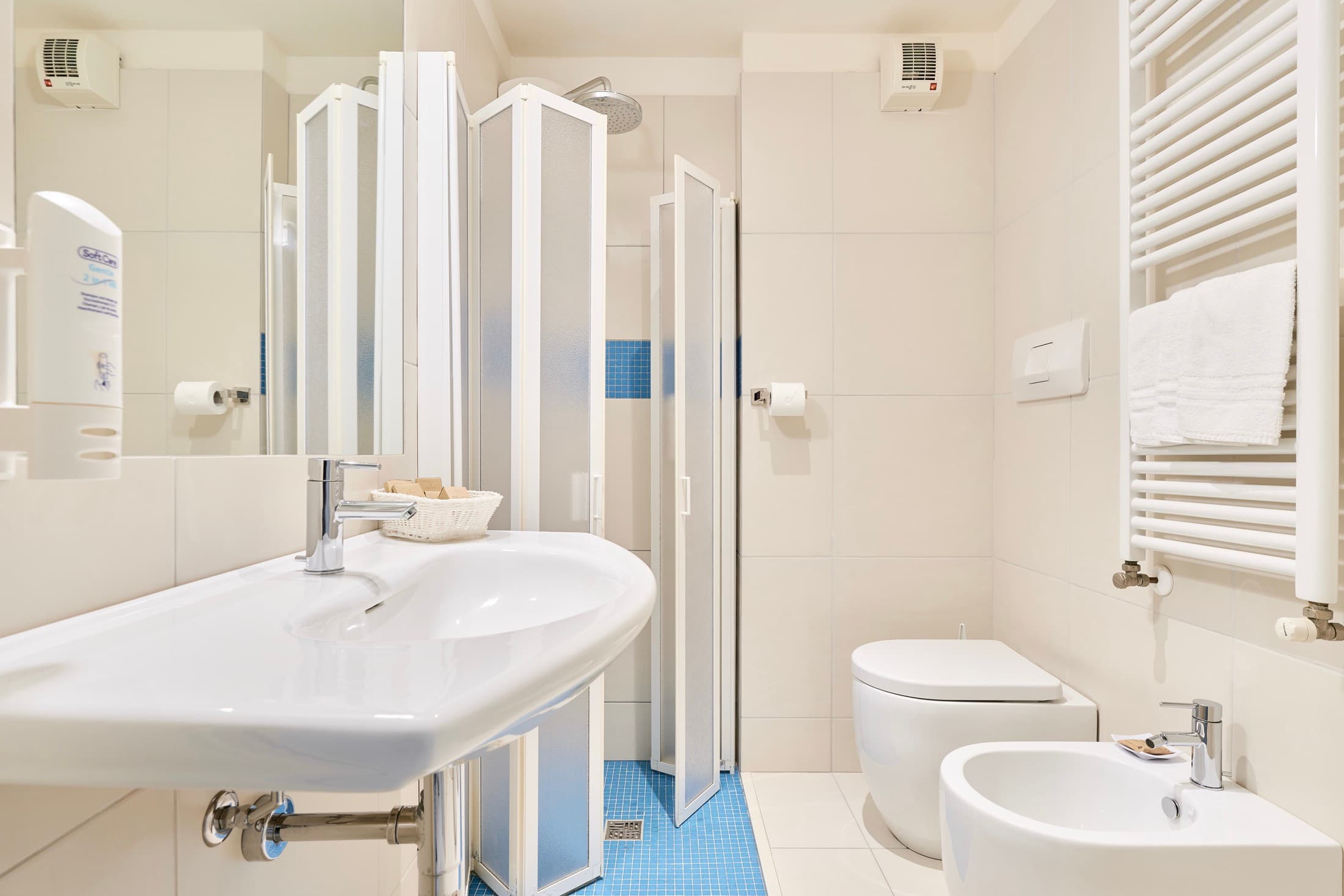 - Set di cortesia (bagnoschiuma, shampoo, cuffia doccia, sapone mani)