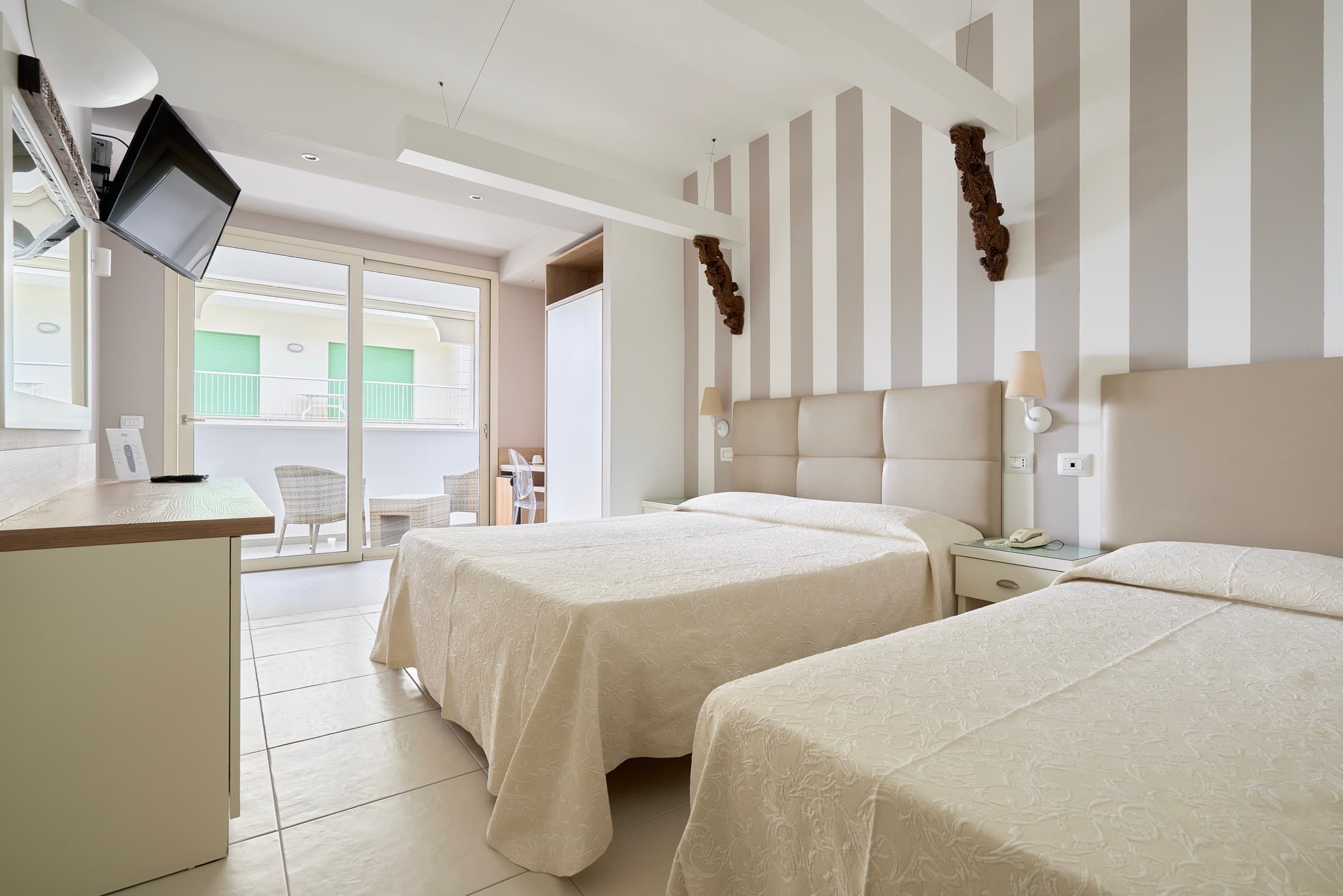 Camera spaziosa ideale per famiglie, con oltre 23 mq, terrazza loggia di 4,5 mq e bagno privato. Insonorizzata, può ospitare fino a 4 persone con letto matrimoniale e due letti singoli.