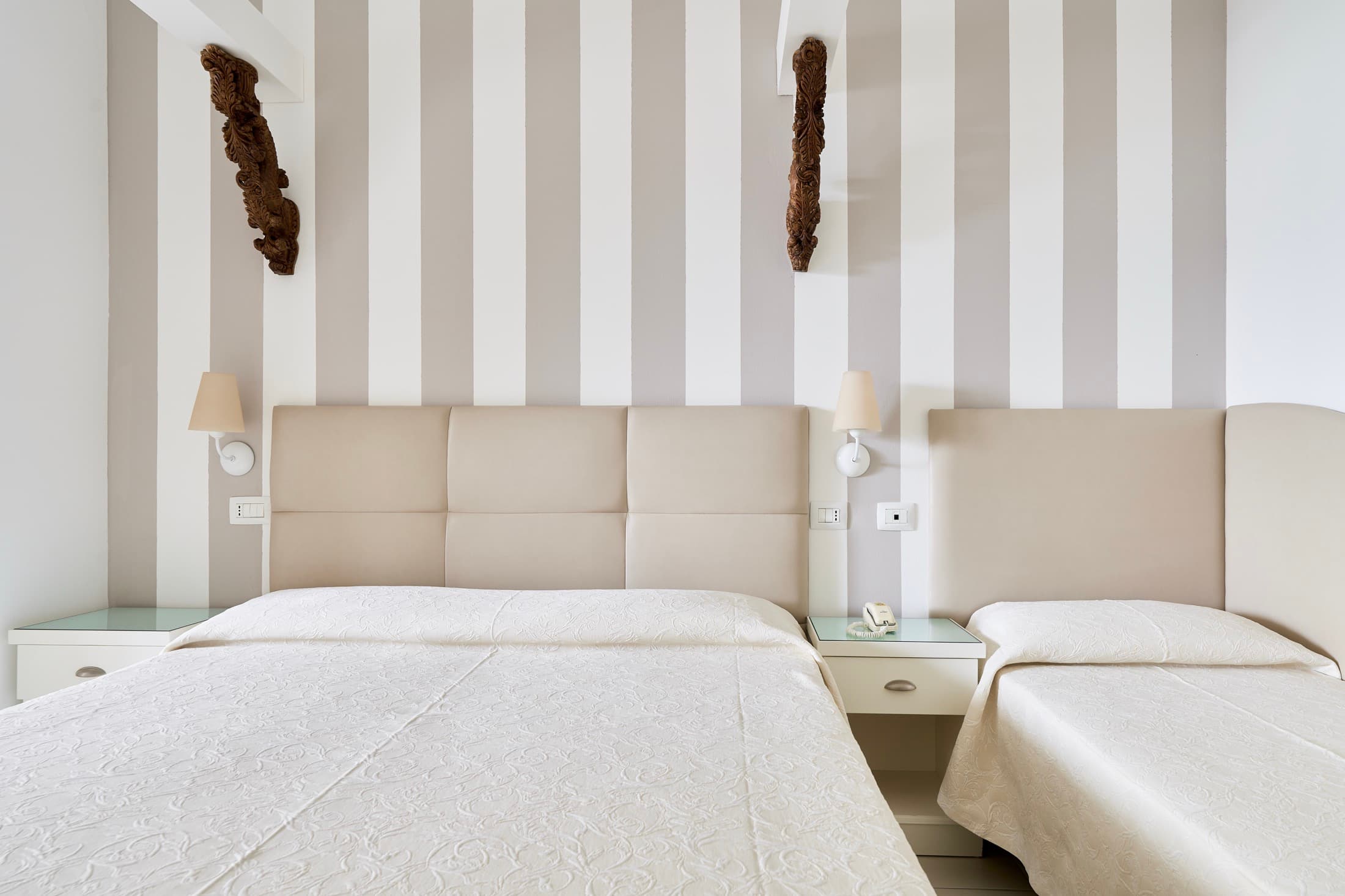 La camera completamente insonorizzata può ospitare fino a 4 persone in quanto al suo interno si trova un letto matrimoniale e due letti singoli.